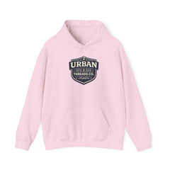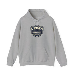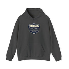The Urban Threads Co. Heritage Badge Hoodie blends classic design with modern streetwear style. Featuring a bold shield badge logo with deep navy tones and clean cream lettering, this design represents the foundation of Urban Threads Co., established in 2026.